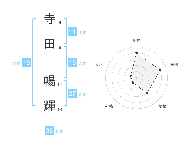 寺田 暢輝さんを姓名の画数から五運を鑑定