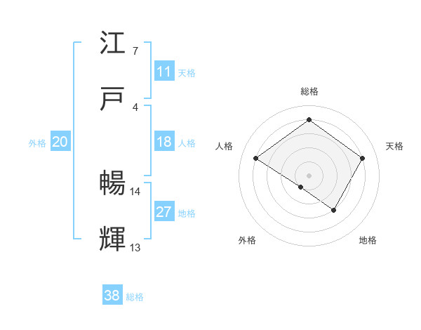 江戸 暢輝さんの総格は38画の4点!
