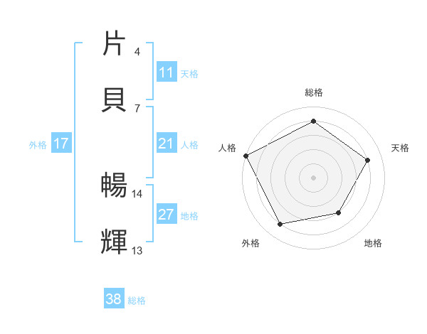片貝 暢輝さんを姓名の画数から五運を鑑定