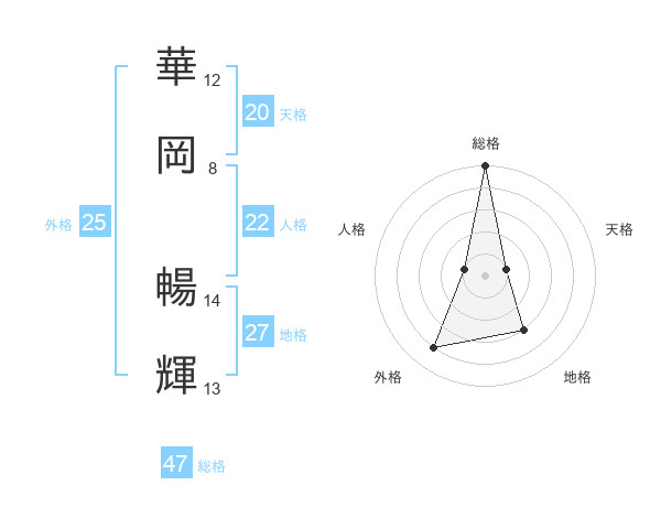 華岡 暢輝さんを姓名の画数から五運を鑑定