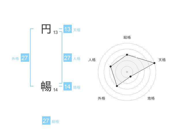 円 暢さんの外格は27画の3点!
