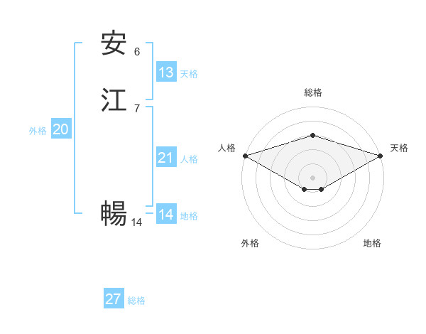 安江 暢さんの天格は13画の5点!
