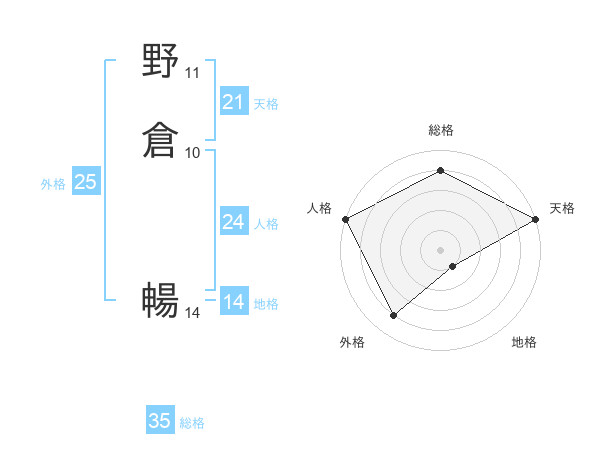 野倉 暢さんの総格は35画の4点!