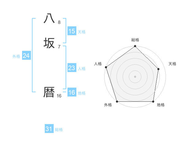 八坂 暦さんの総格は31画の5点!