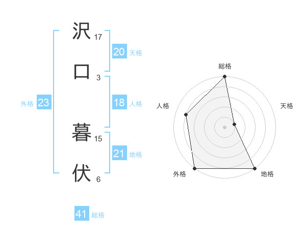 沢口 暮伏さんを姓名の画数から五運を鑑定