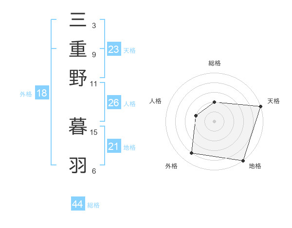 三重野 暮羽さんを姓名の画数から五運を鑑定