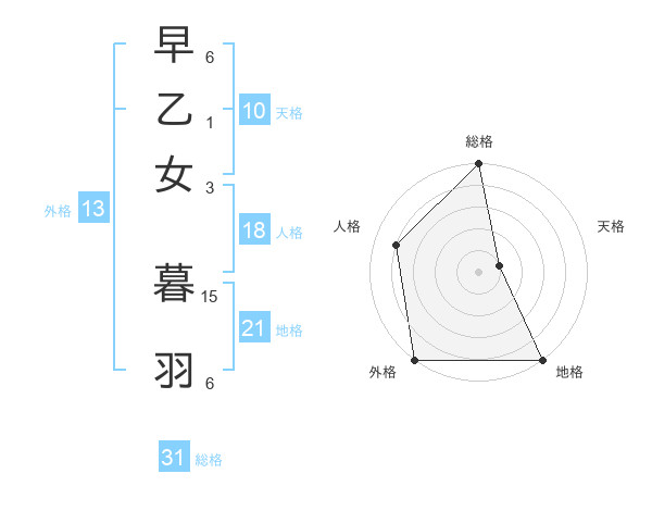 早乙女 暮羽さんを姓名の画数から五運を鑑定