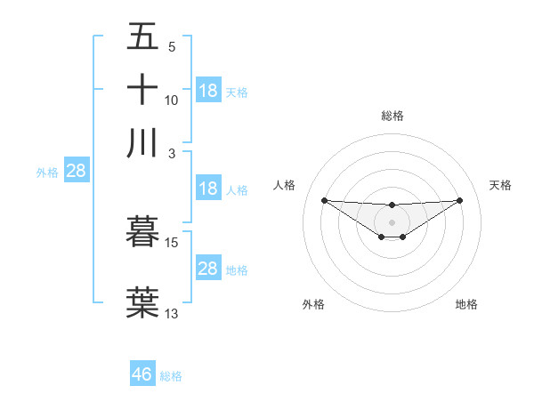 五十川 暮葉さんの総格は46画の1点!