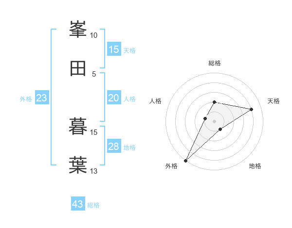 峯田 暮葉さんを姓名の画数から五運を鑑定