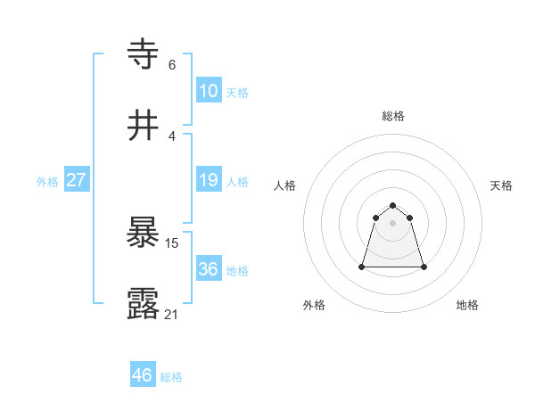 寺井 暴露さんの総格は46画の1点!