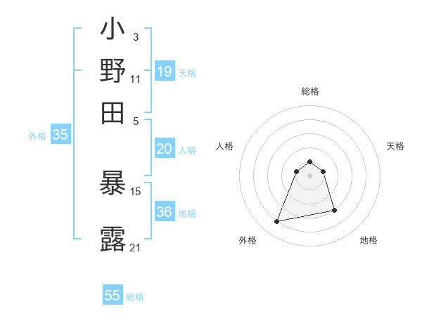 小野田 暴露さんを姓名の画数から五運を鑑定