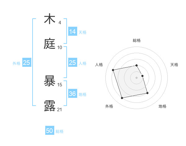 木庭 暴露さんの総格は50画の2点!