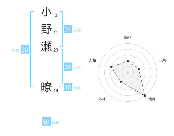 小野瀬 暸さんを姓名の画数から五運を鑑定