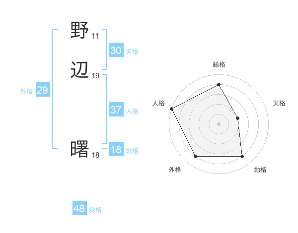 野辺 曙さんの総格は48画の4点