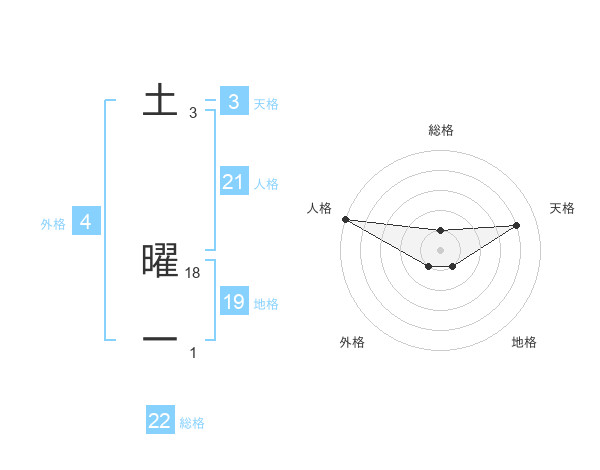 土 曜一さんの総格は22画の1点!