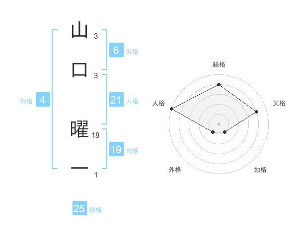 山口 曜一さんの総格は25画の4点!