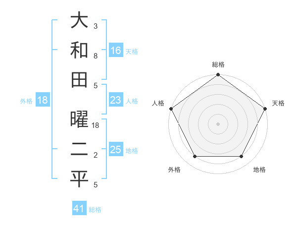 大和田 曜二平さんを姓名の画数から五運を鑑定