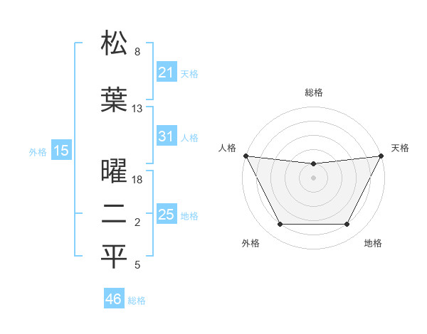 松葉 曜二平さんを姓名の画数から五運を鑑定