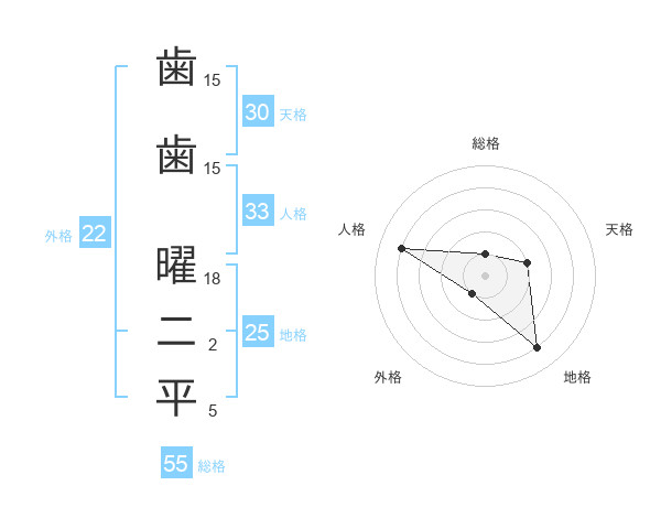 歯歯 曜二平さんを姓名の画数から五運を鑑定