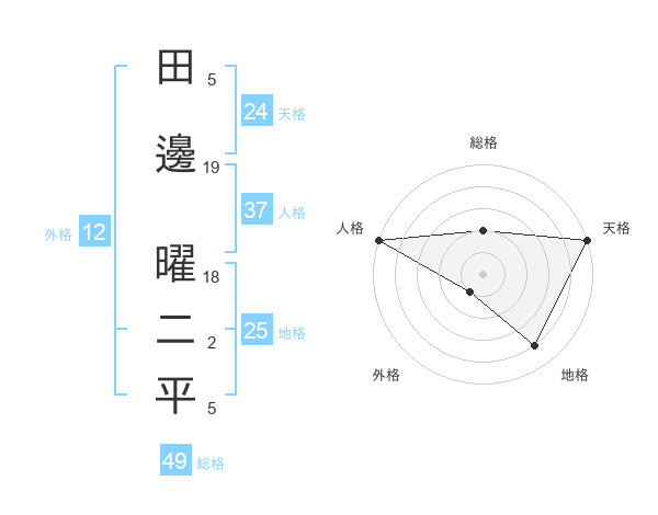 田邊 曜二平さんを姓名の画数から五運を鑑定