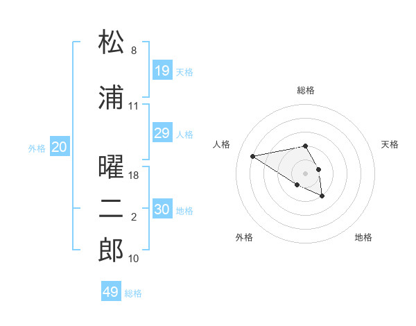 松浦 曜二郎さんの総格は49画の2点