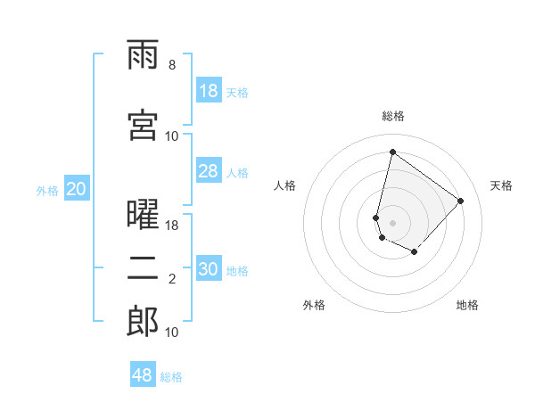 雨宮 曜二郎さんの地格は30画の2点!