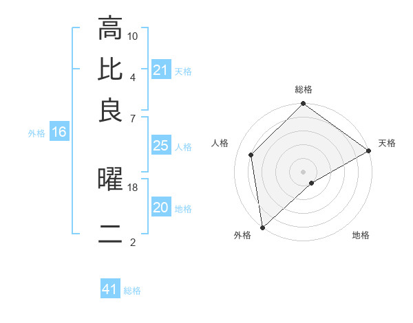 高比良 曜二さんを姓名の画数から五運を鑑定