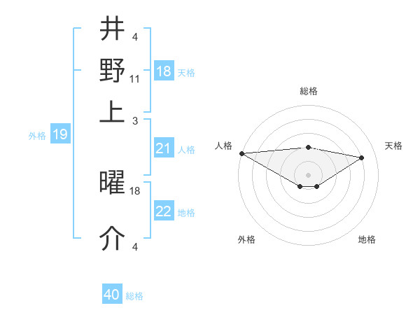 井野上 曜介さんの総格は40画の2点