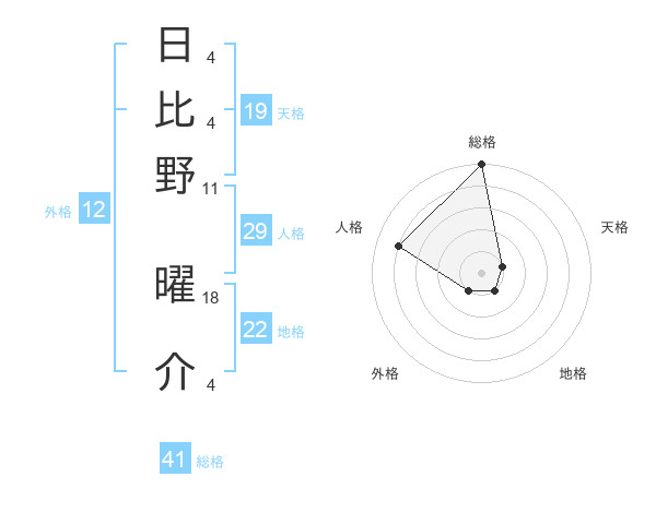 日比野 曜介さんを姓名の画数から五運を鑑定