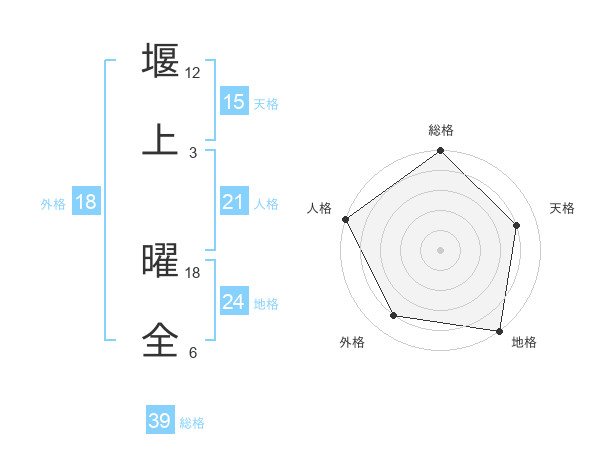 堰上 曜全さんの総格は39画の5点!