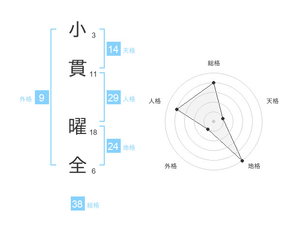 小貫 曜全さんの総格は38画の4点!