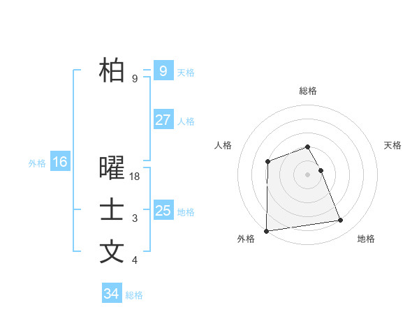柏 曜士文さんの総格は34画の2点!