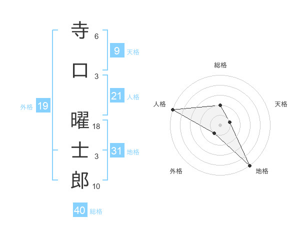 寺口 曜士郎さんの総格は40画の2点!