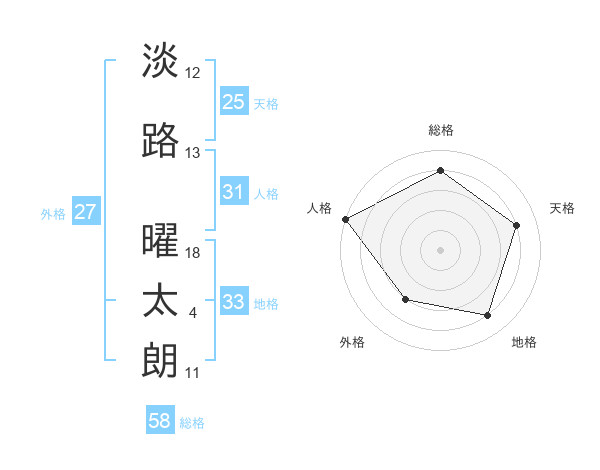 淡路 曜太朗さんの総格は58画の4点!