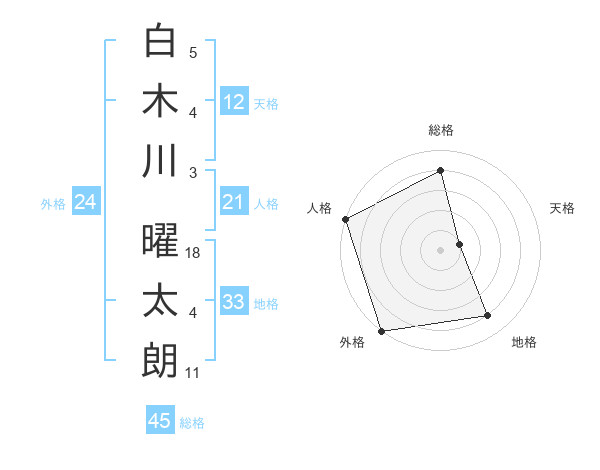 白木川 曜太朗さんの総格は45画の4点!