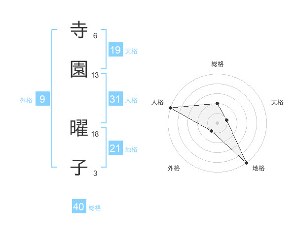 寺園 曜子さんの天格は19画の1点!