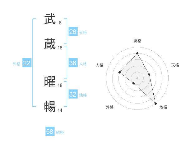 武蔵 曜暢さんを姓名の画数から五運を鑑定