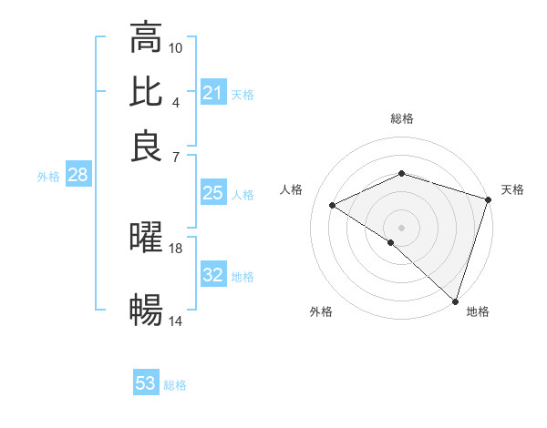 高比良 曜暢さんの天格は21画の5点!