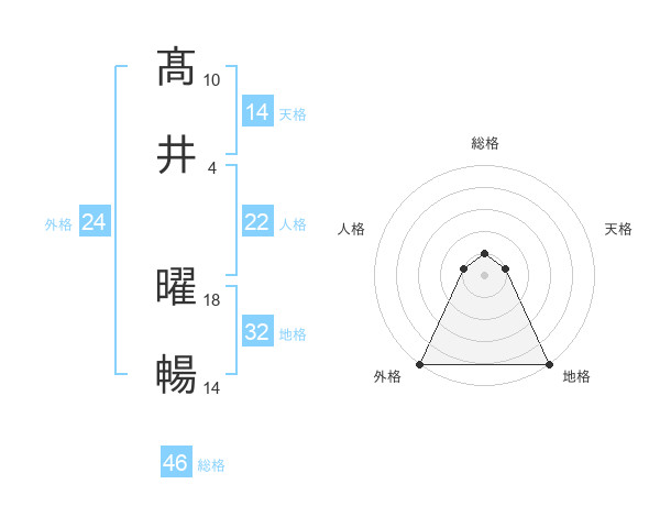 髙井 曜暢さんの総格は46画の1点!