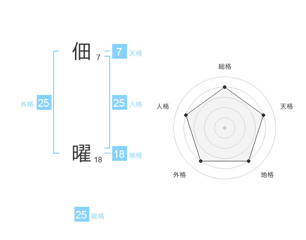 佃 曜さんの総格は25画の4点!