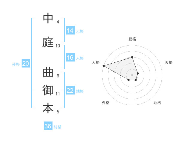 中庭 曲御本さんの総格は36画の3点!