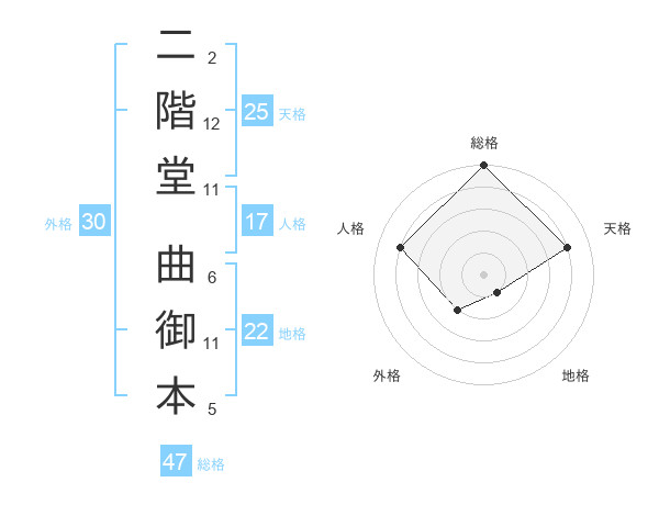 二階堂 曲御本さんの総格は47画の5点!