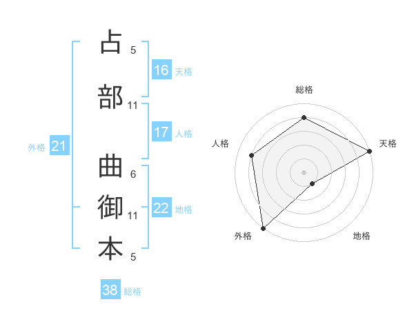 占部 曲御本さんを姓名の画数から五運を鑑定