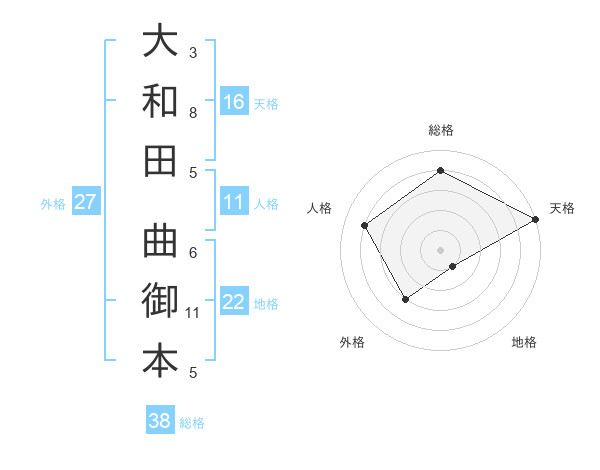 大和田 曲御本さんを姓名の画数から五運を鑑定