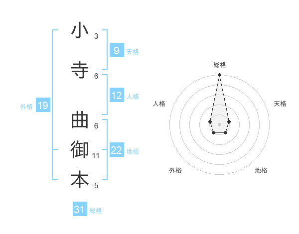 小寺 曲御本さんの総格は31画の5点!