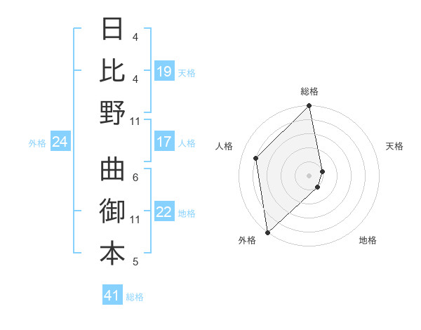 日比野 曲御本さんを姓名の画数から五運を鑑定