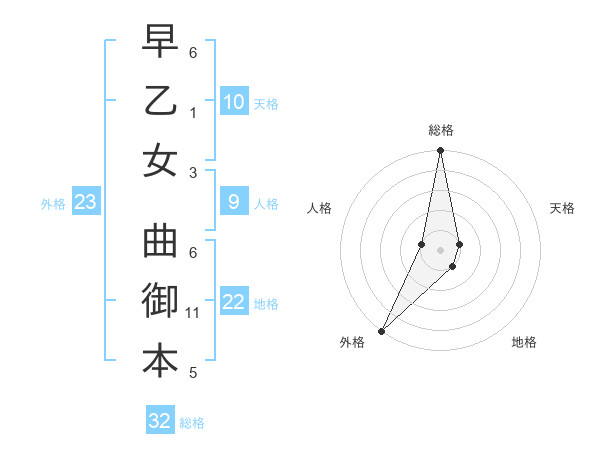 早乙女 曲御本さんを姓名の画数から五運を鑑定