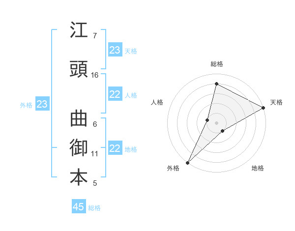 江頭 曲御本さんを姓名の画数から五運を鑑定