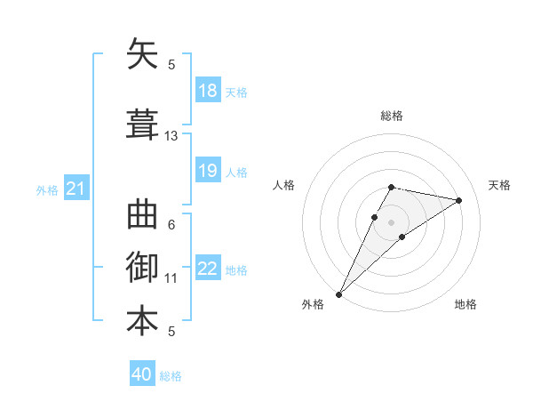 矢葺 曲御本さんを姓名の画数から五運を鑑定