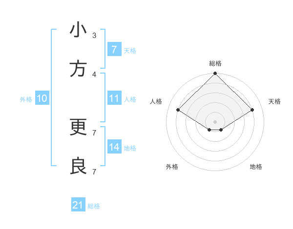 小方 更良さんの総格は21画の5点!